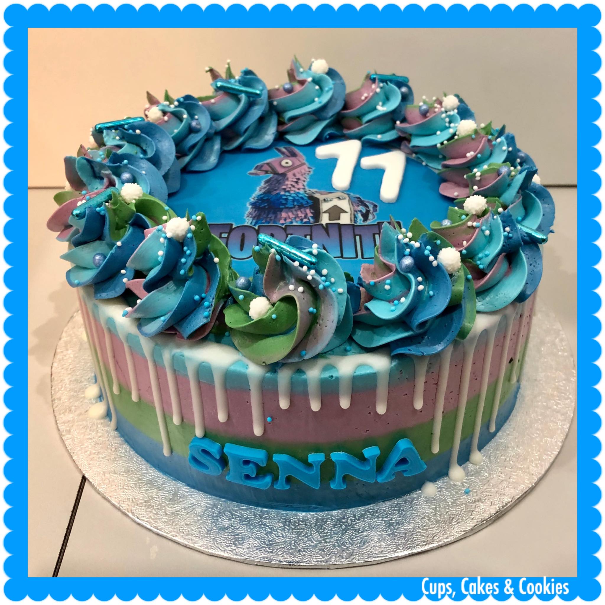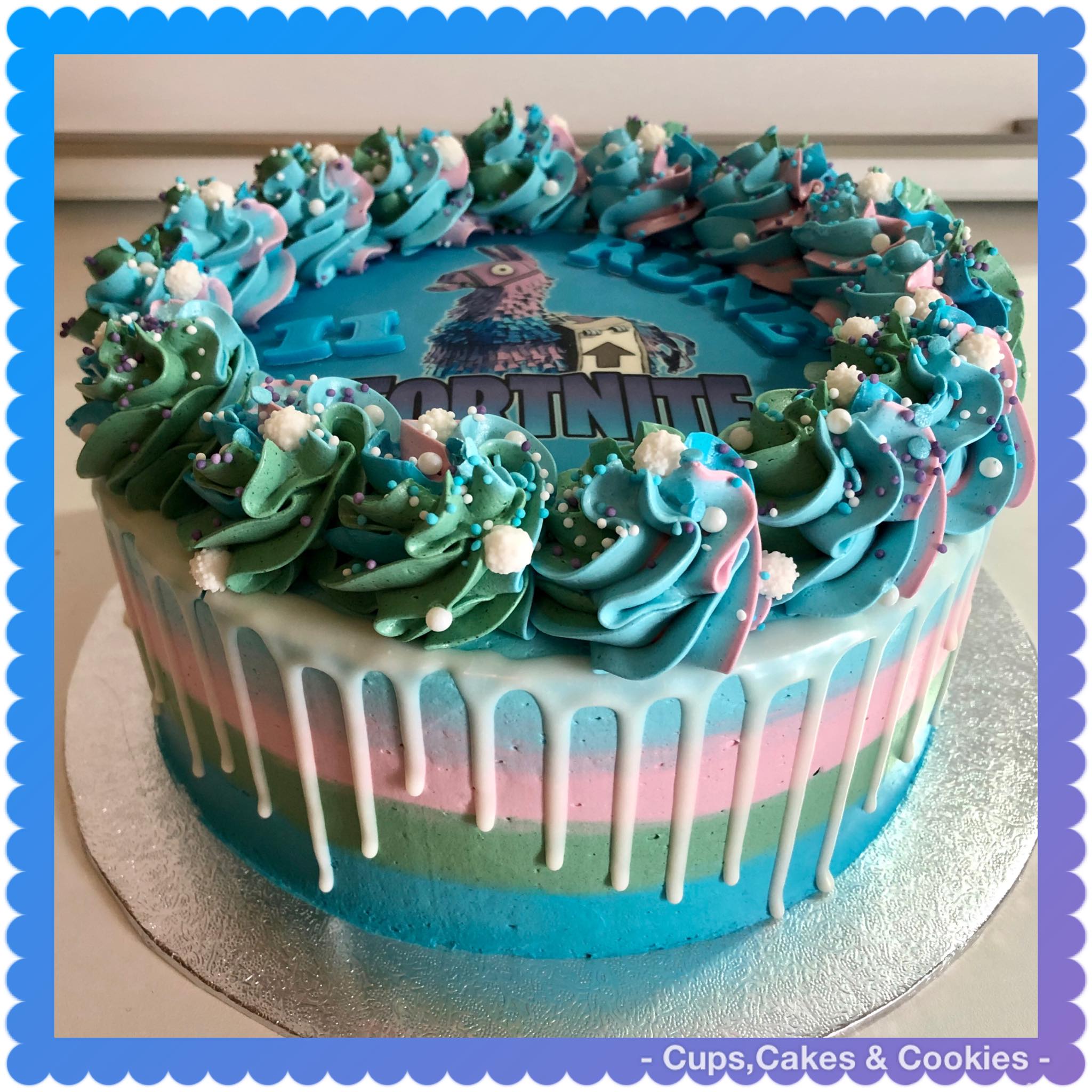Themataart dripcake met suikerpasta.