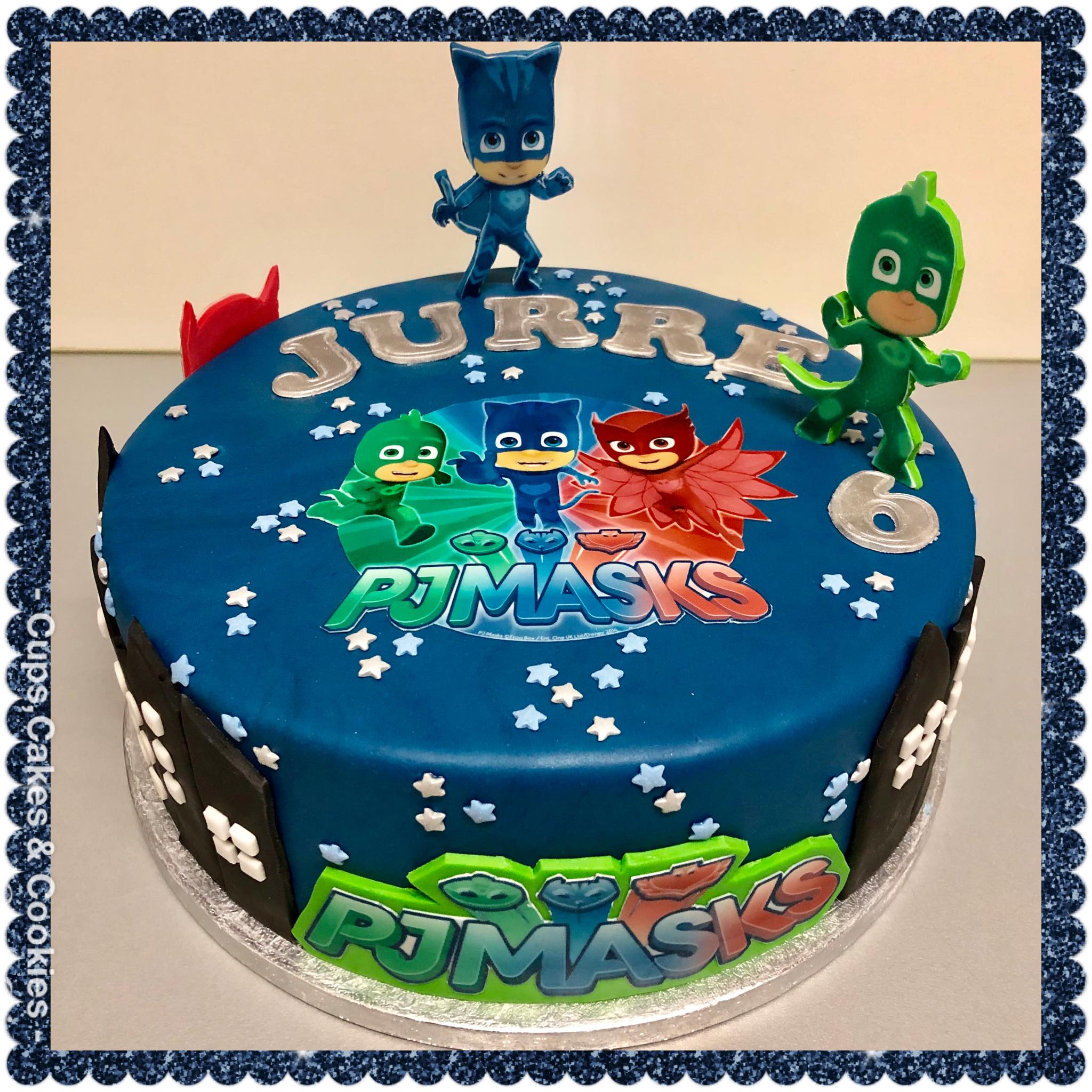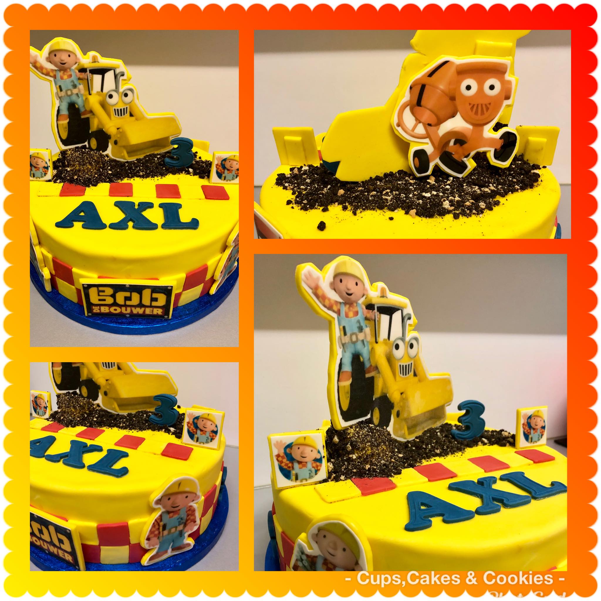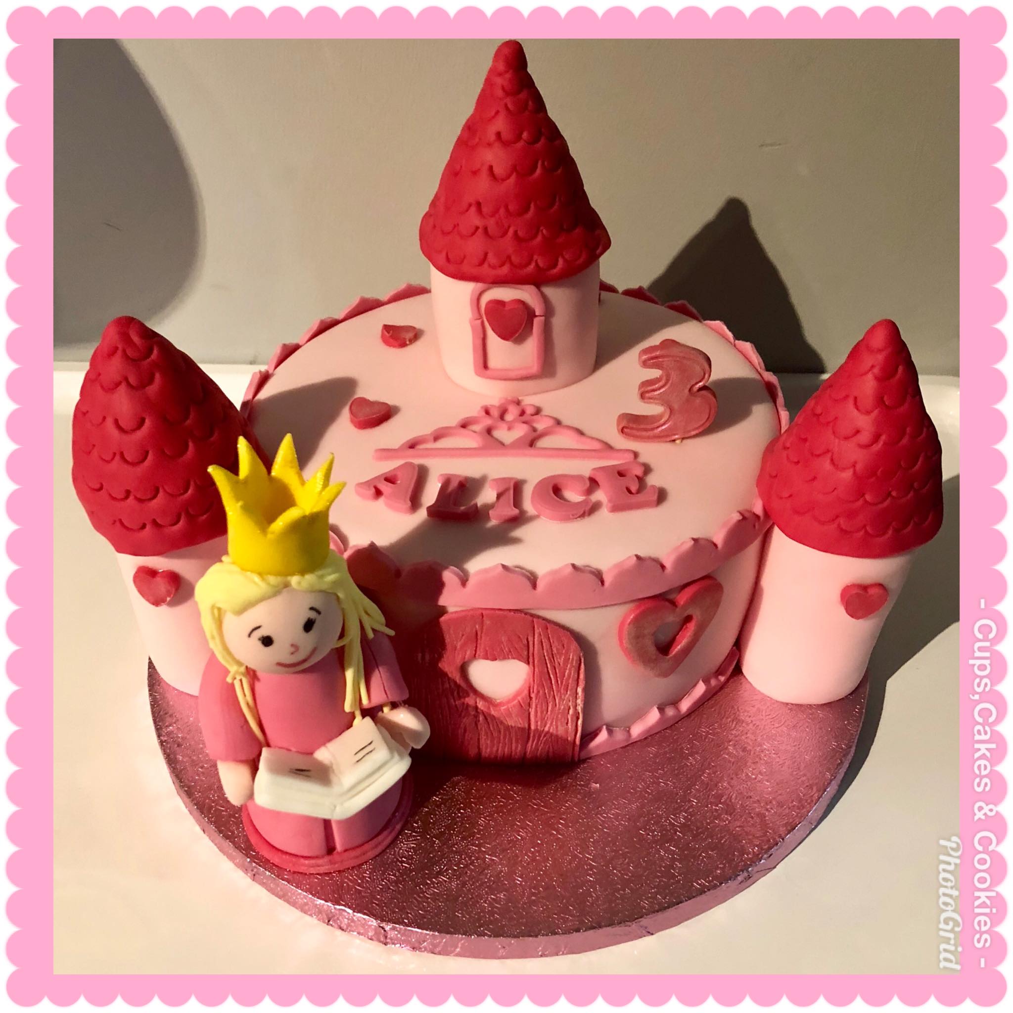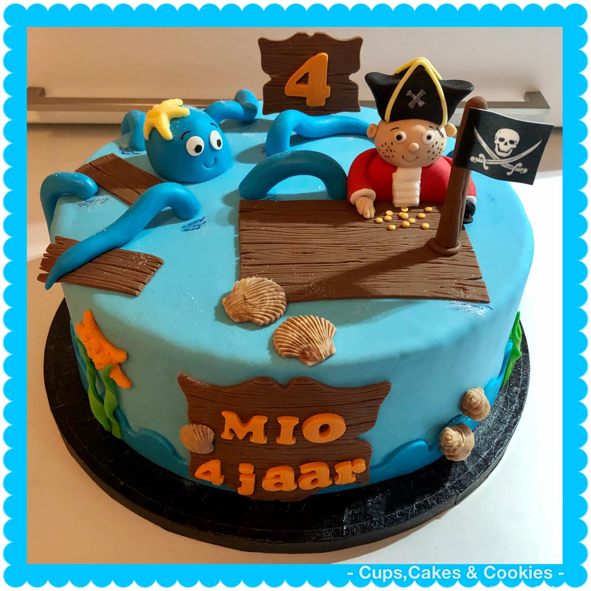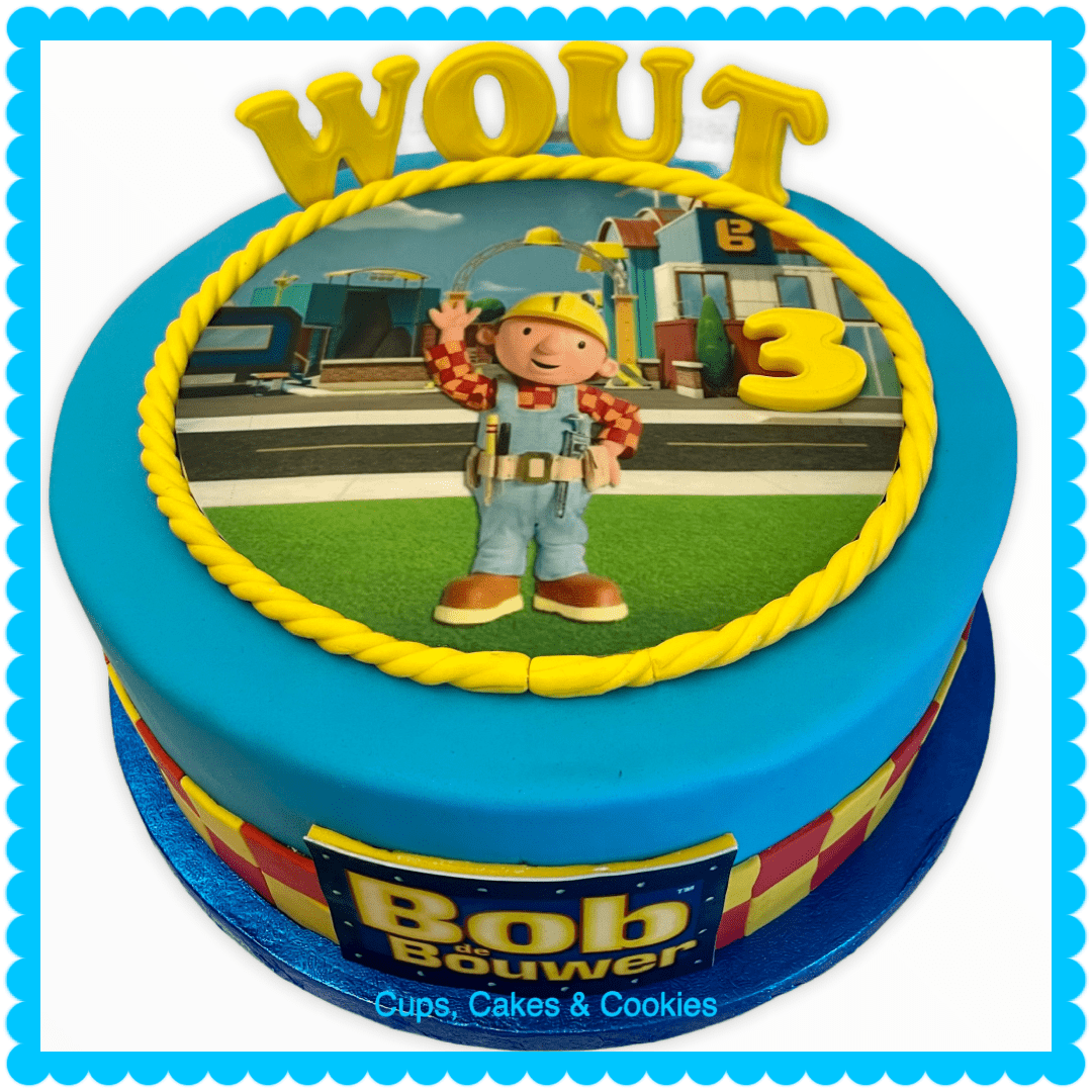 Deze taart is volledig met fondant (=suikerpasta) overtrokken.