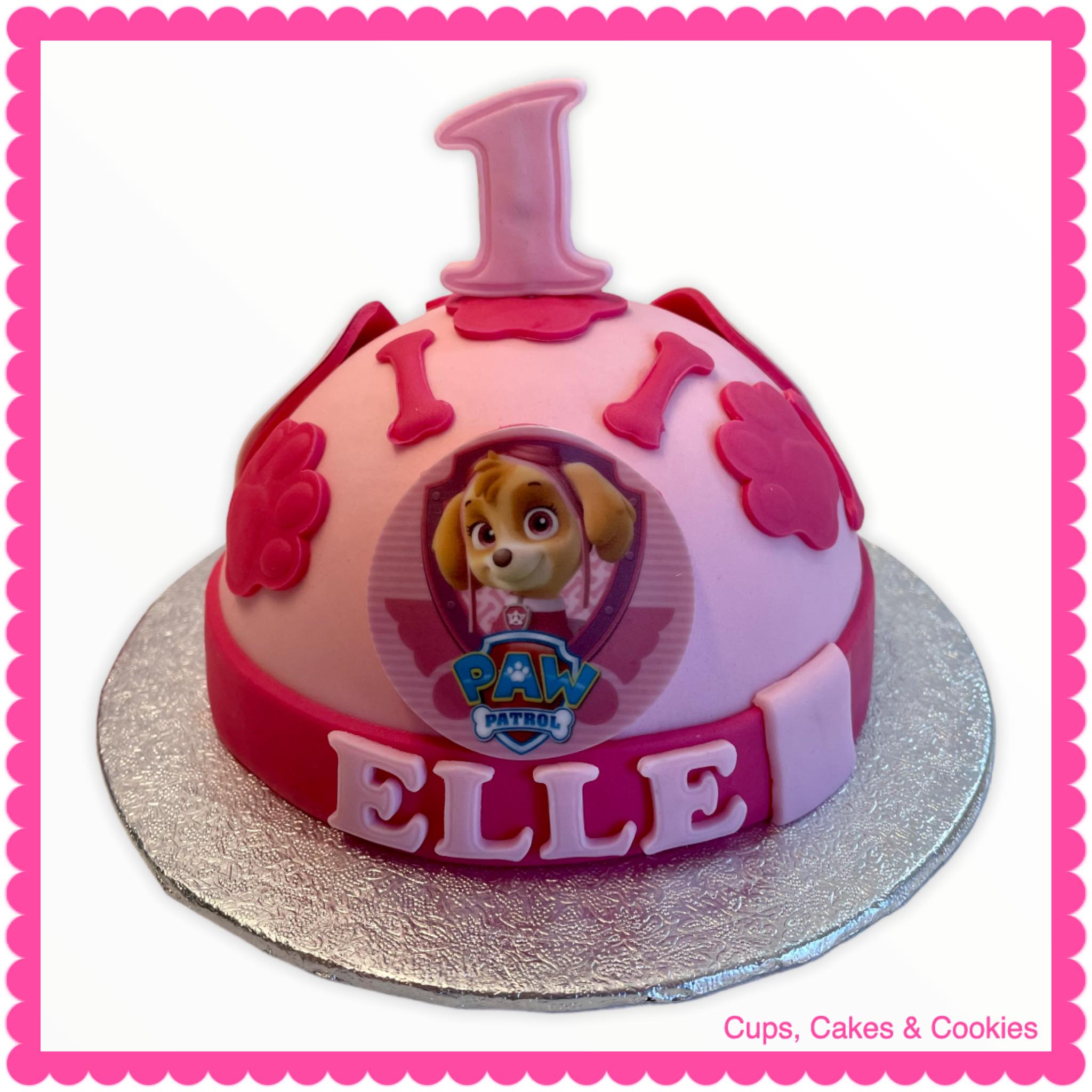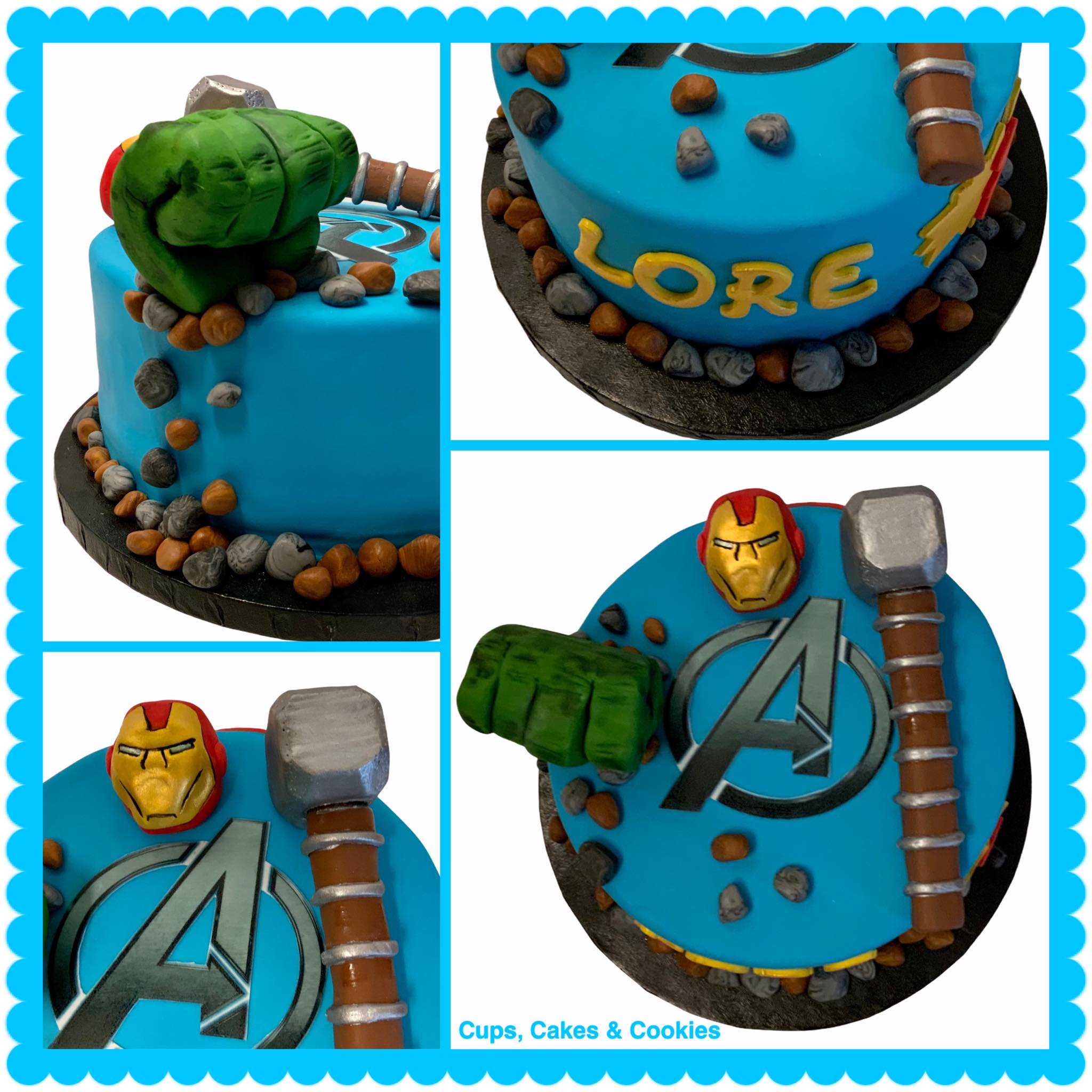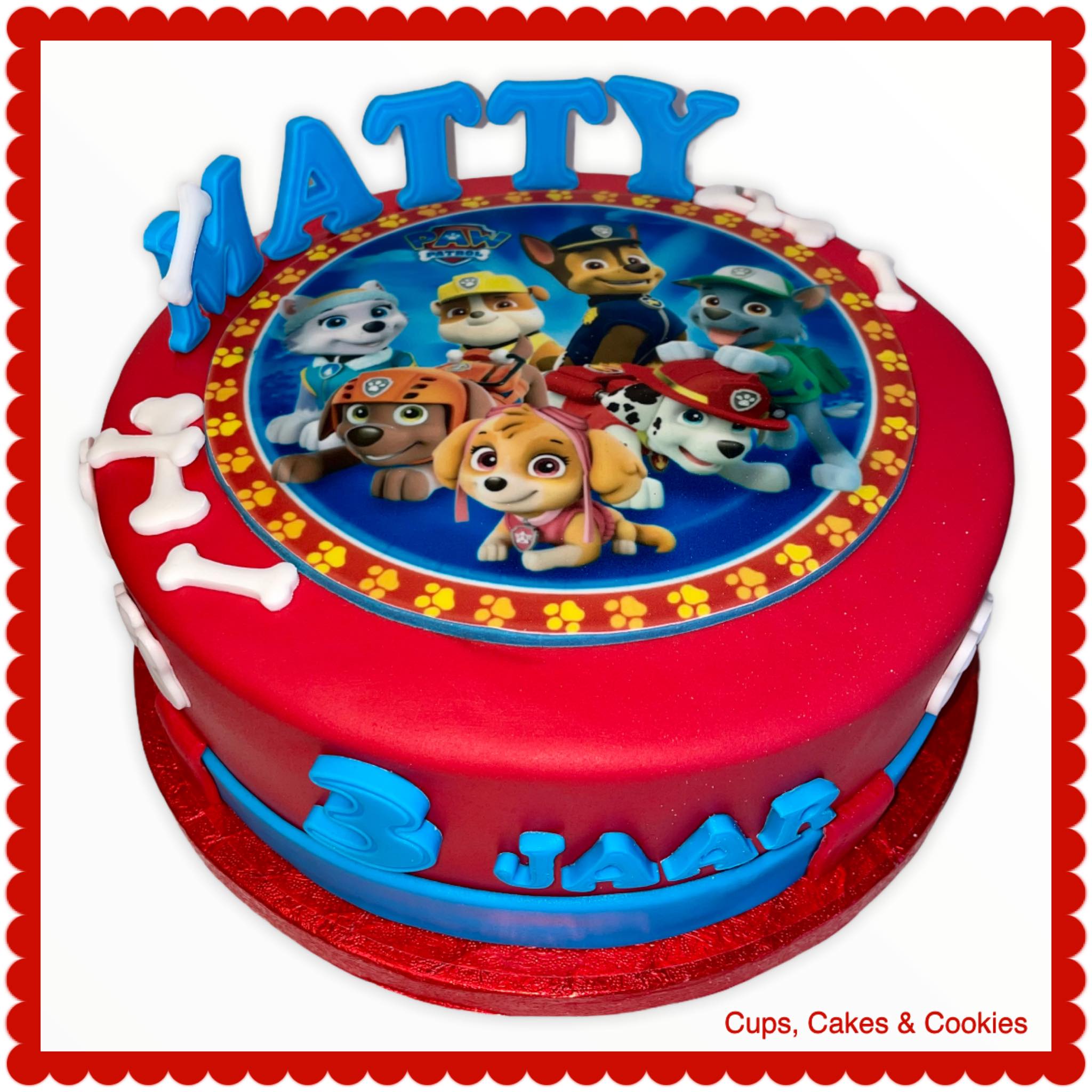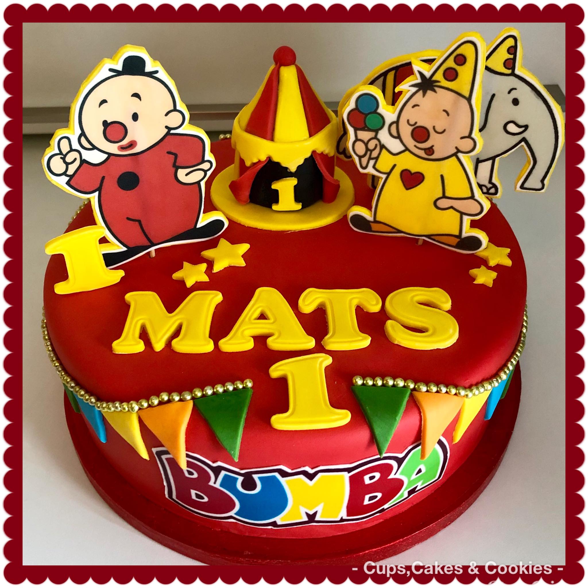 Deze taart is volledig met fondant (=suikerpasta) overtrokken.