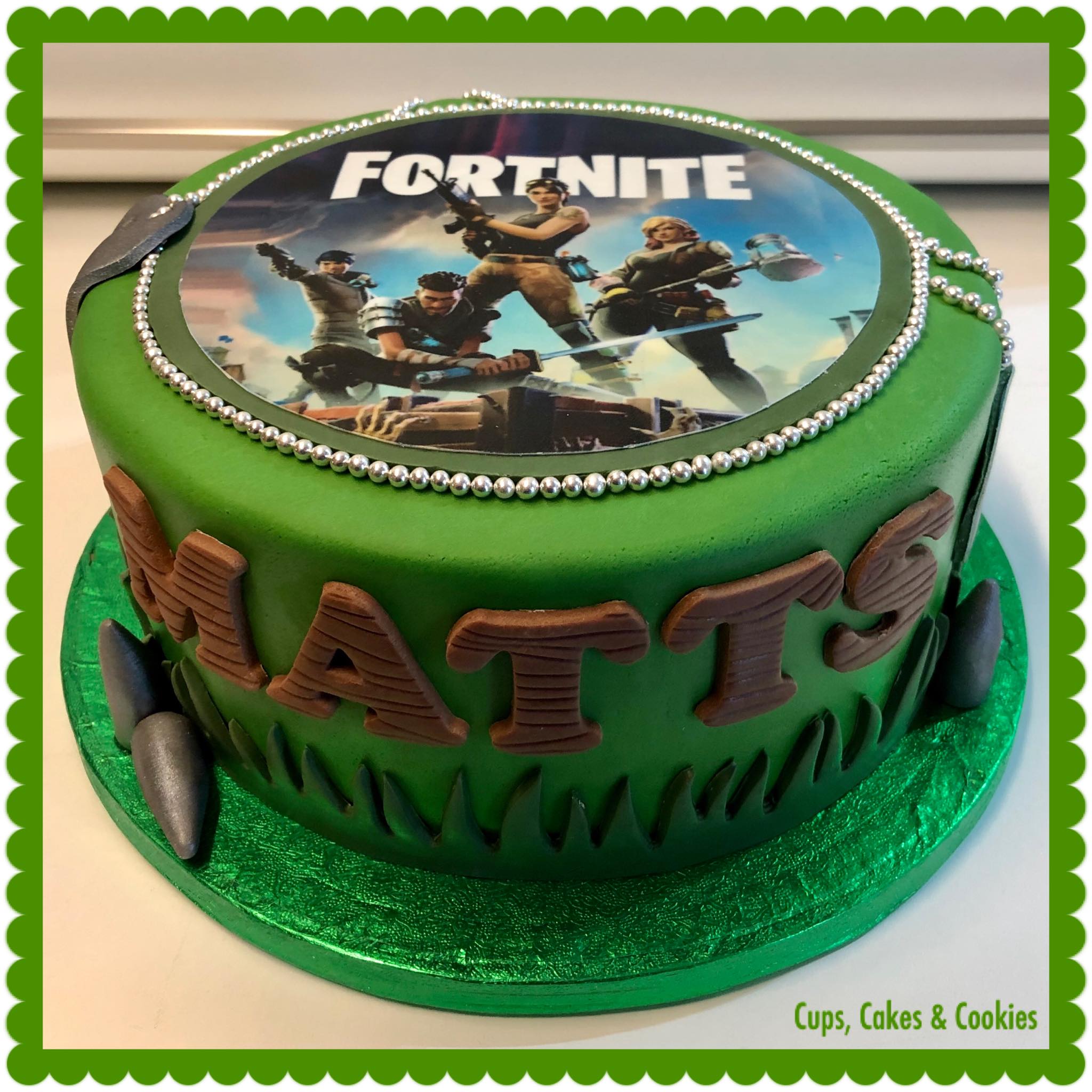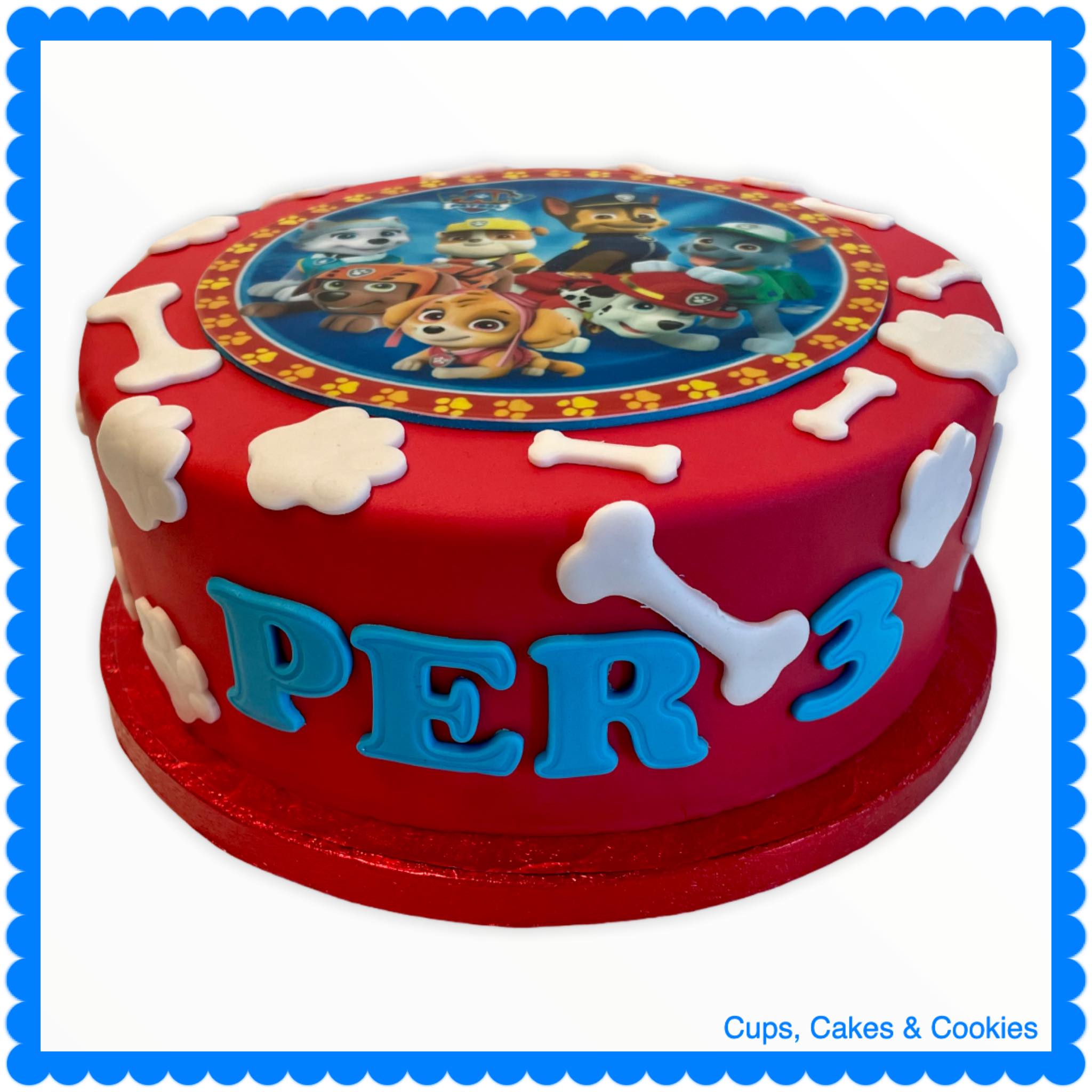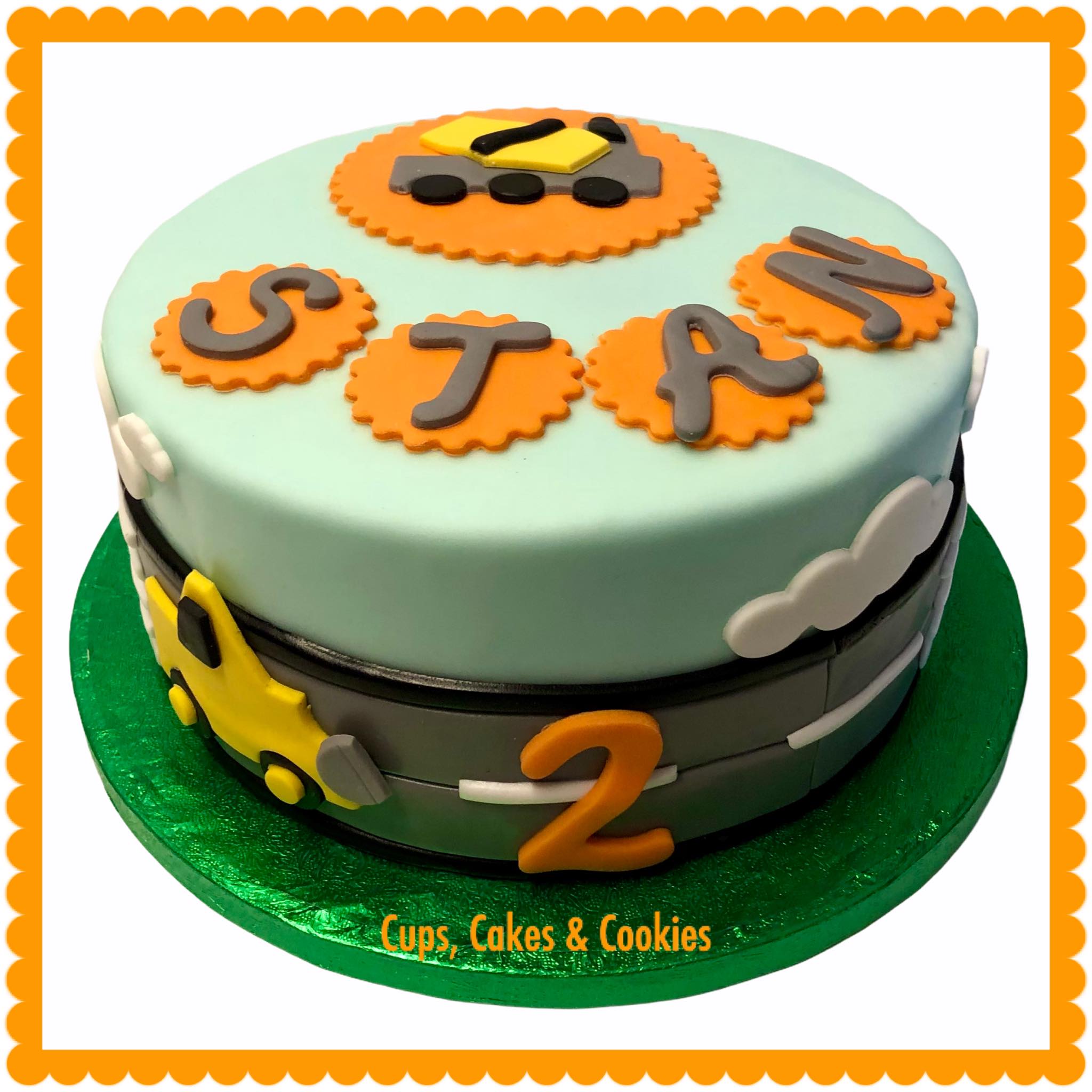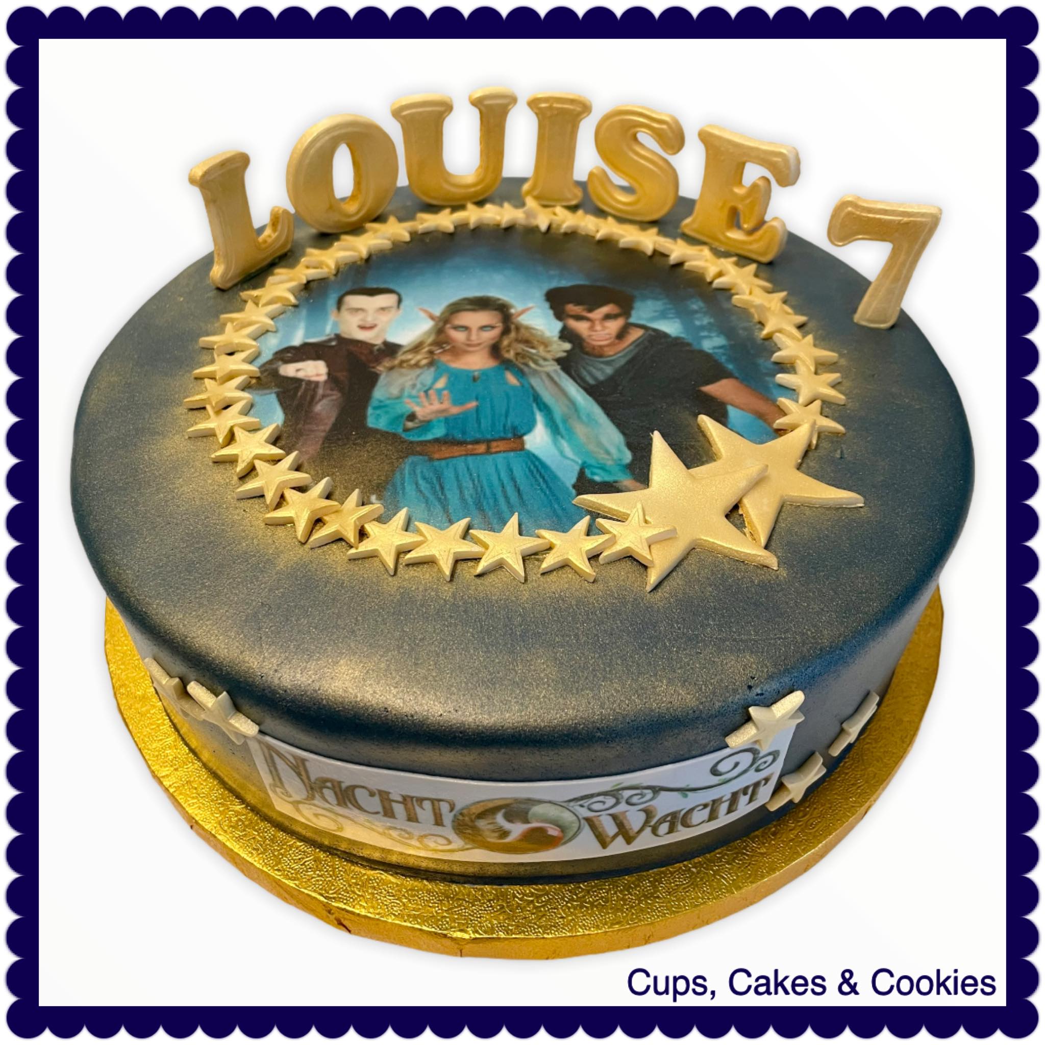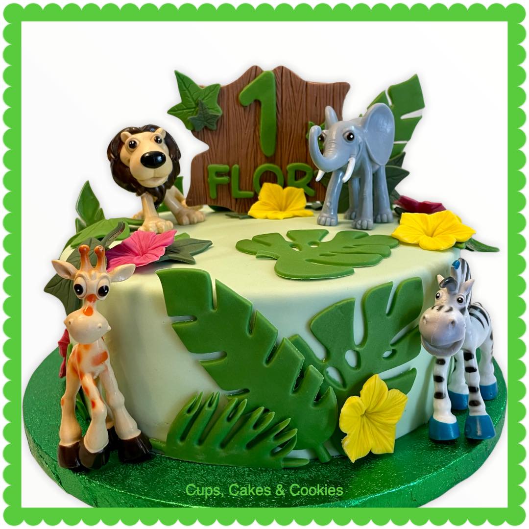 Deze taart is volledig met fondant (=suikerpasta) overtrokken.