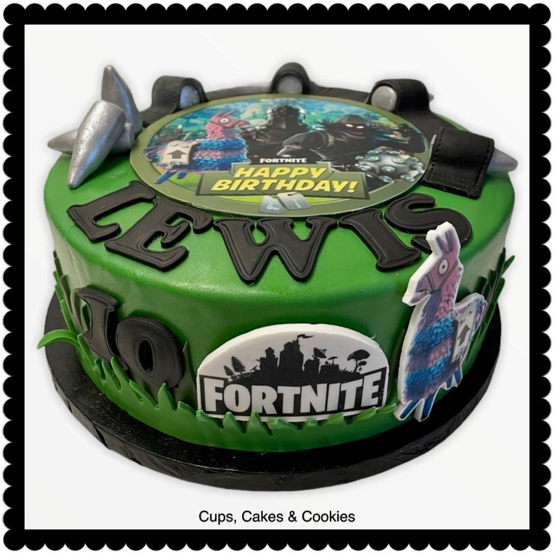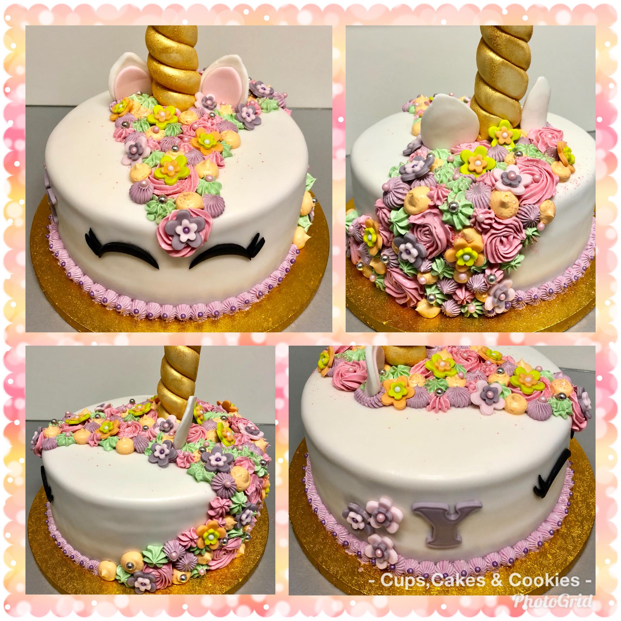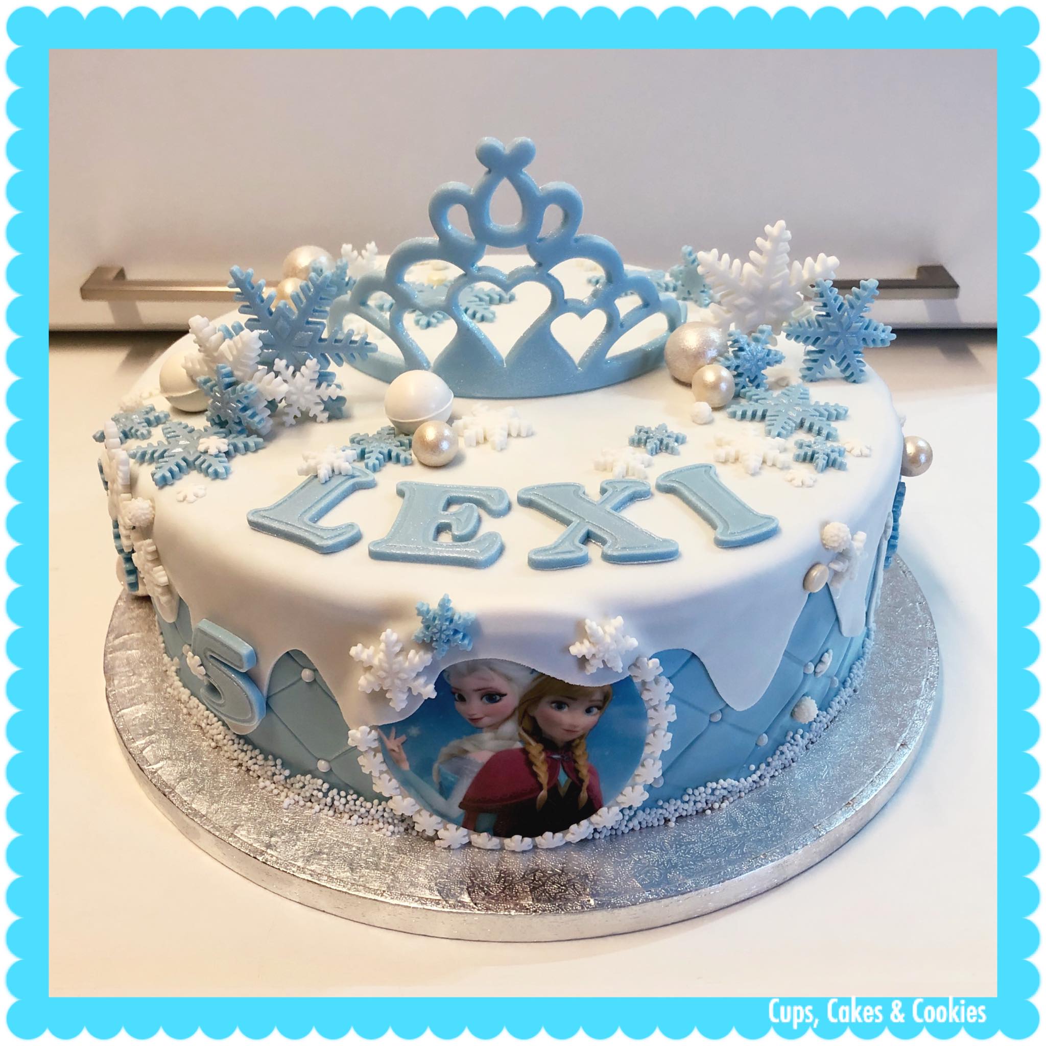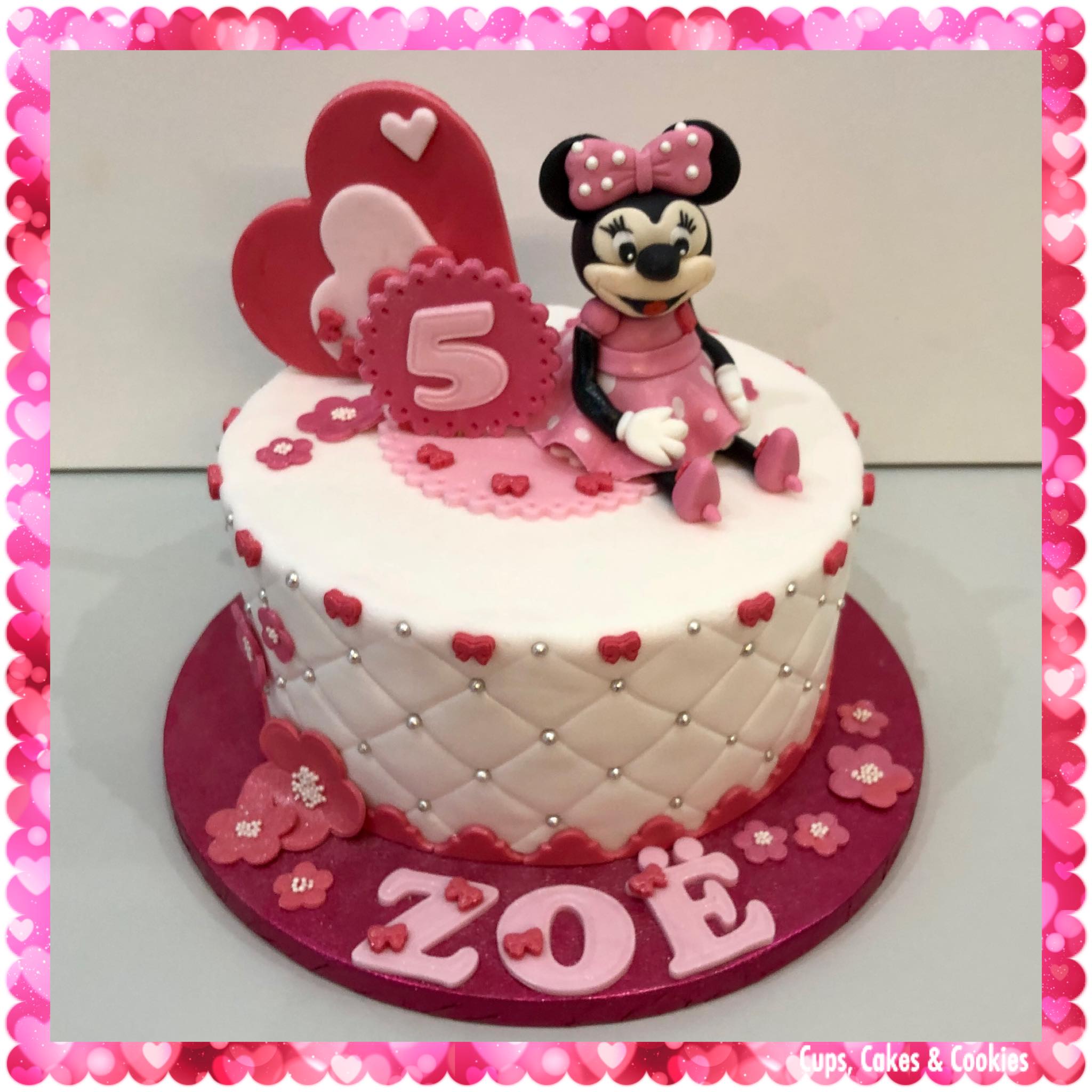 Deze taart is volledig met fondant (=suikerpasta) overtrokken.