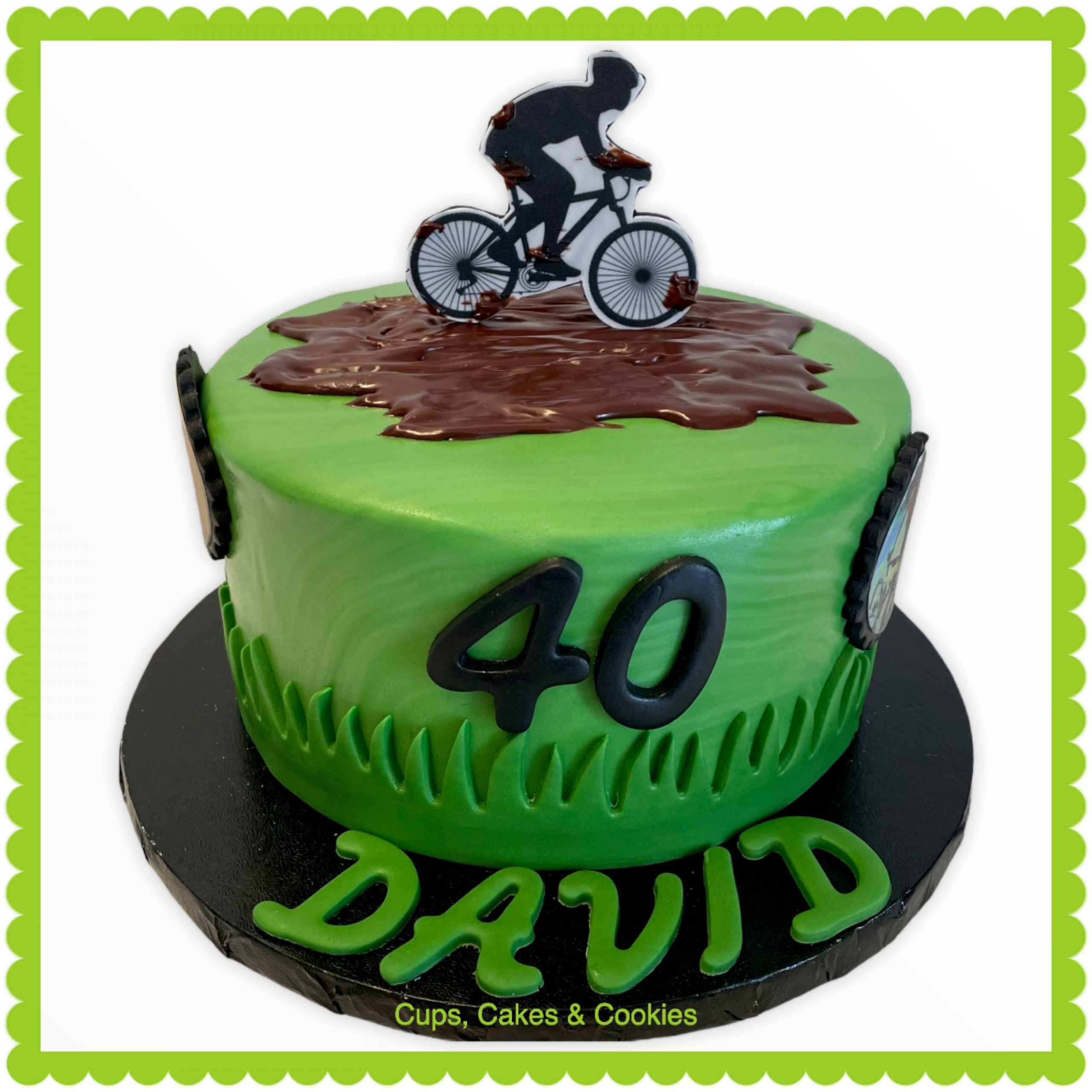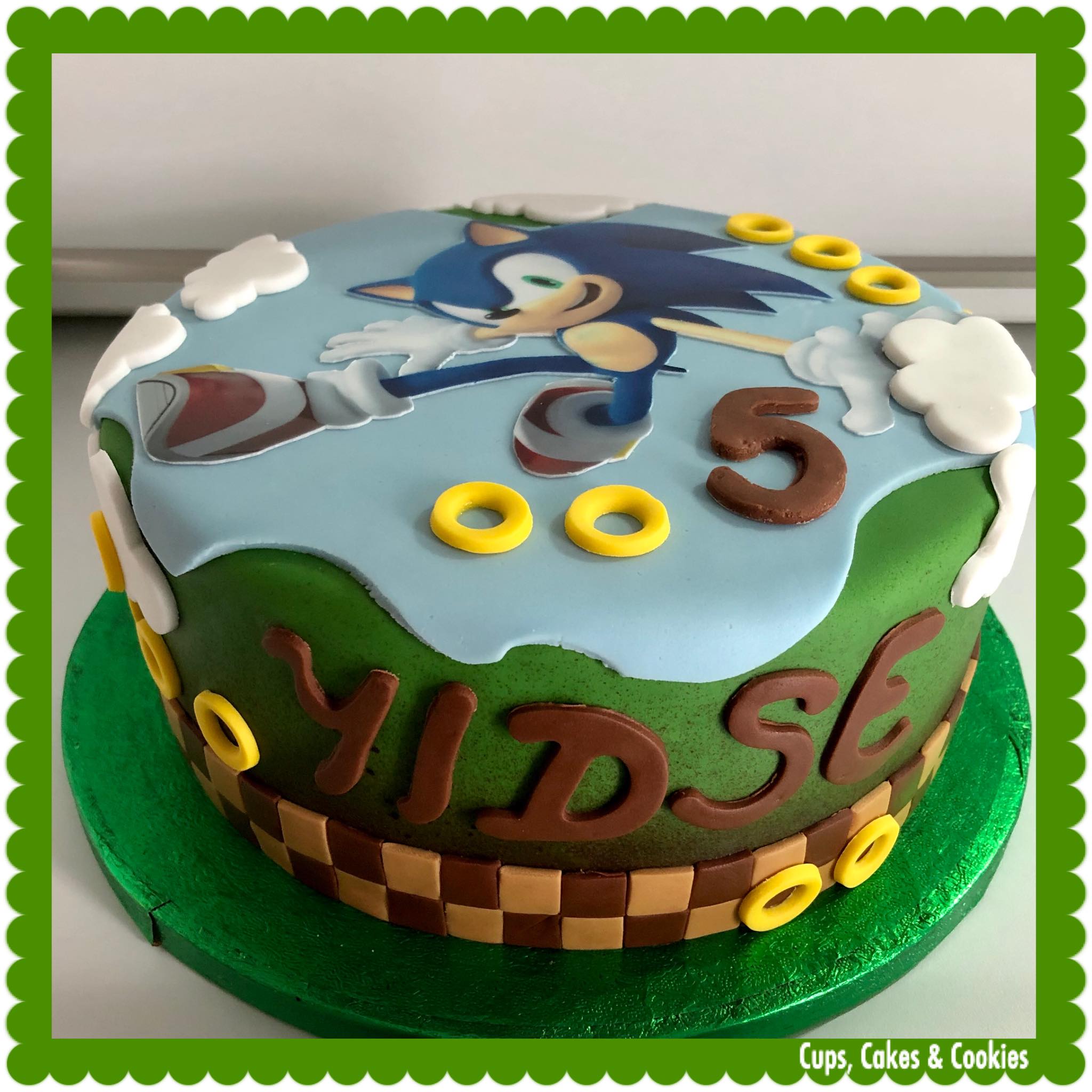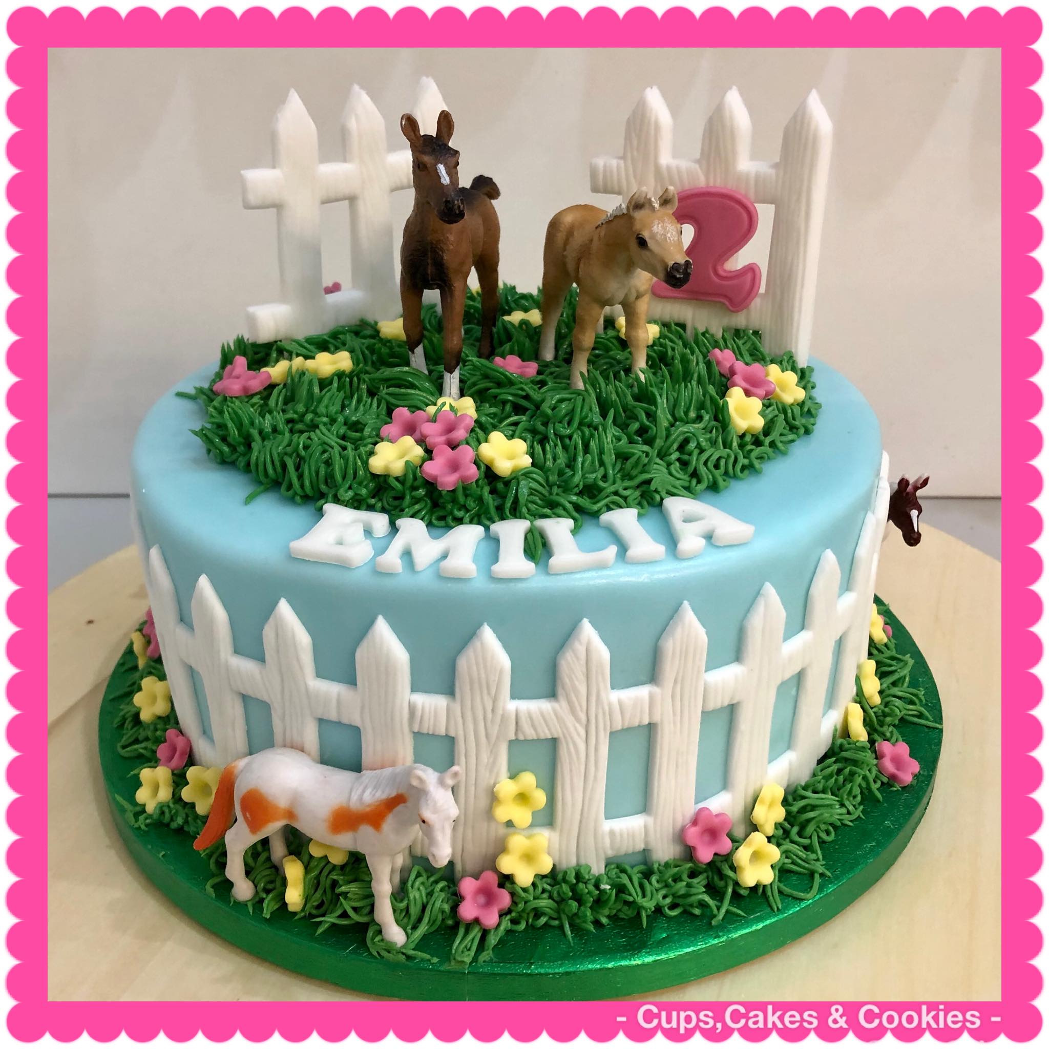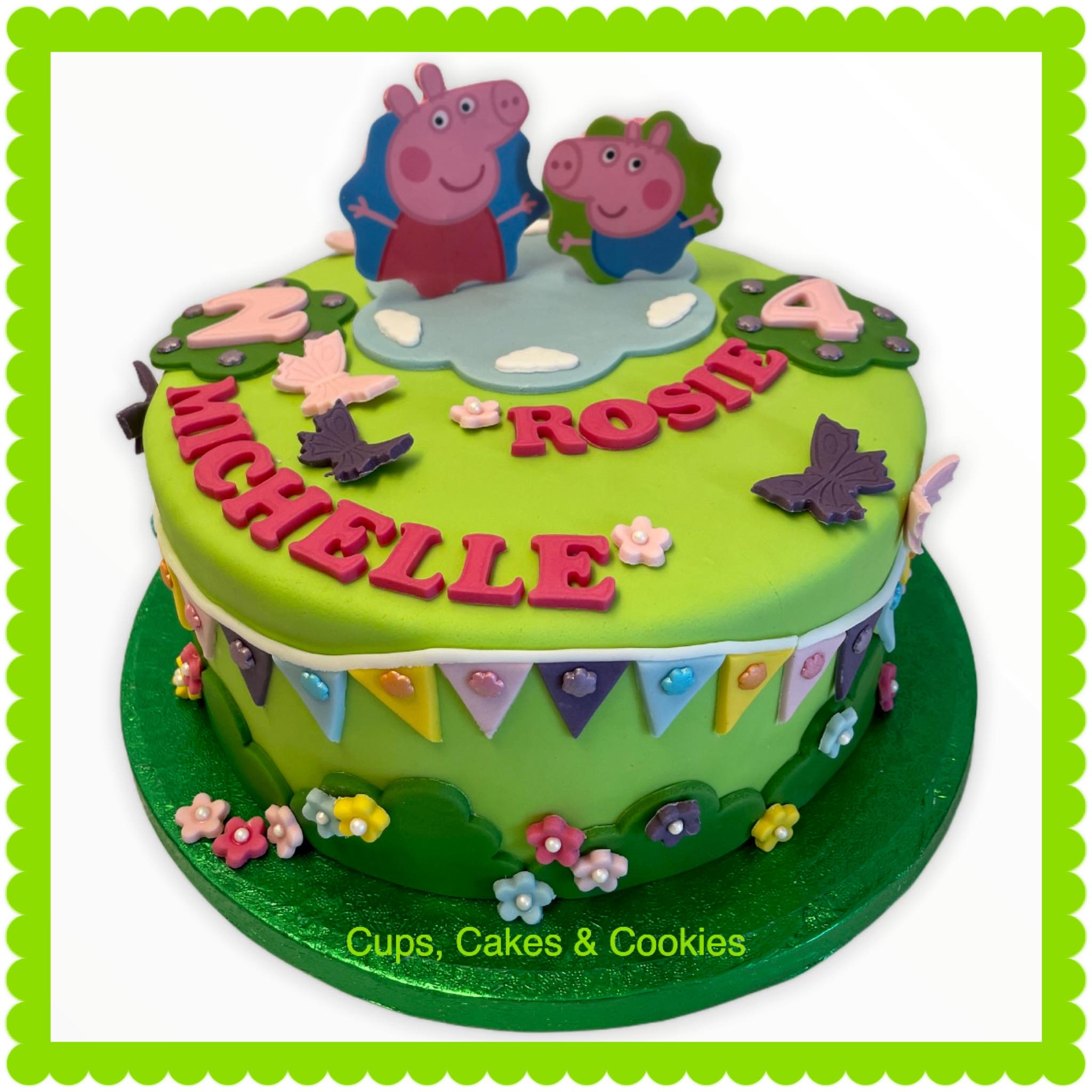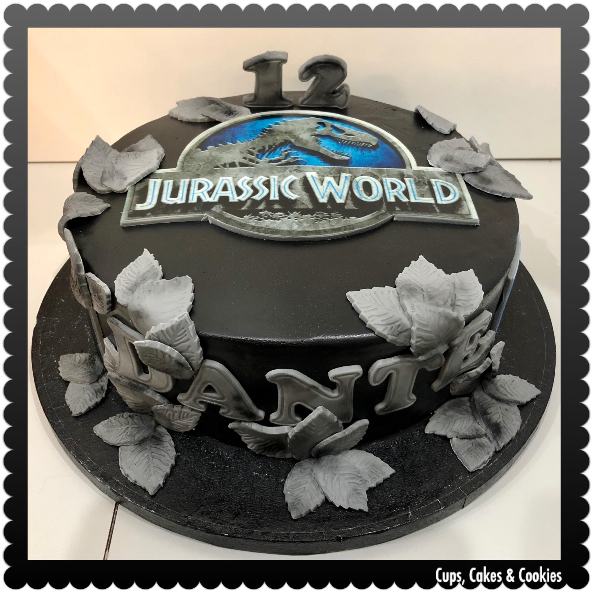 Deze taart is volledig met fondant (=suikerpasta) overtrokken.